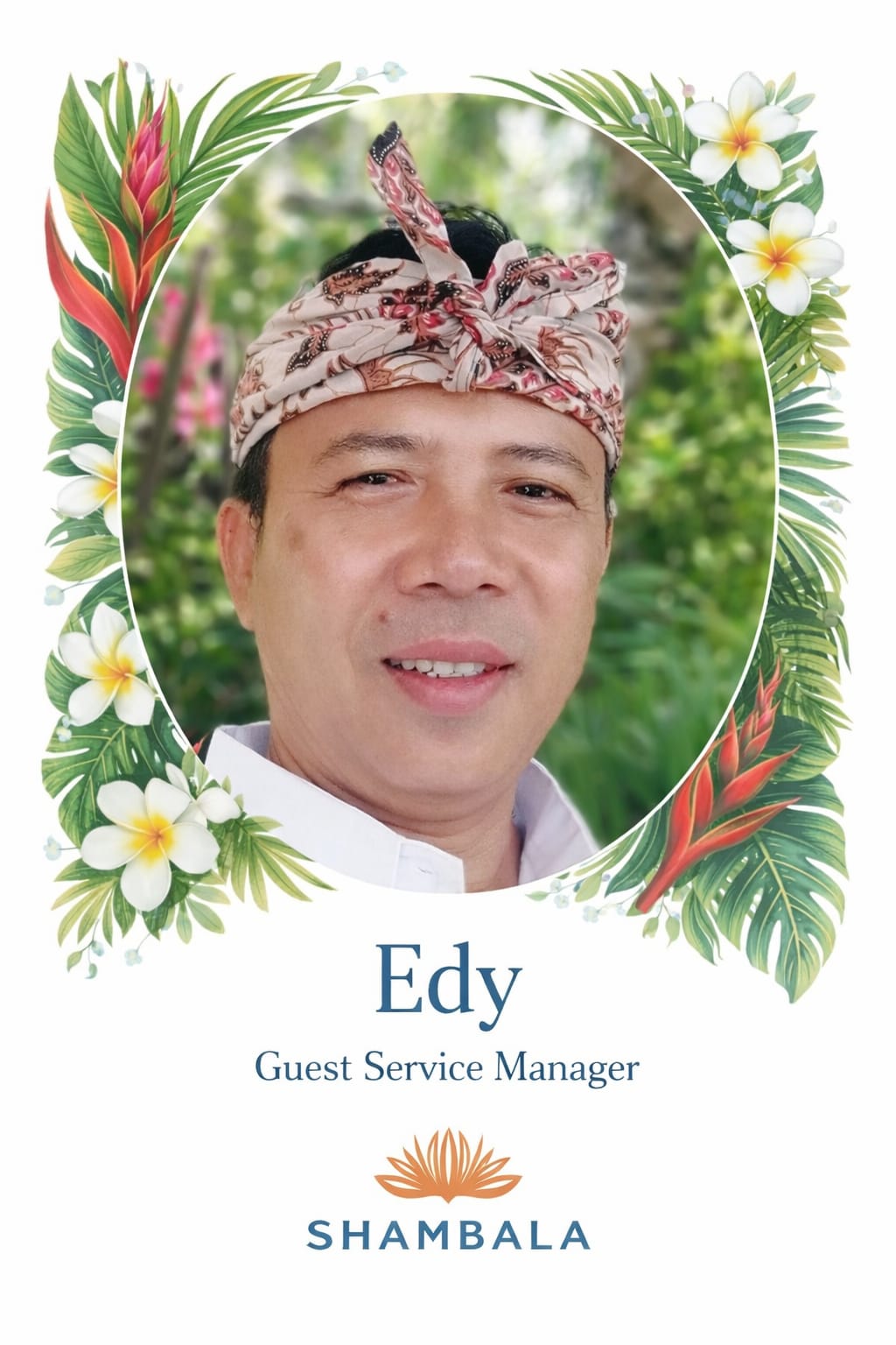 At Shambala, he is here to make your experience seamless and enriching. From organizing your travel arrangements to coordinating special requests and excursions, Edy ensures that every detail is taken care of with care and precision. If you are curious, he is also happy to share insights into the rich history, culture, and philosophy of Bali.